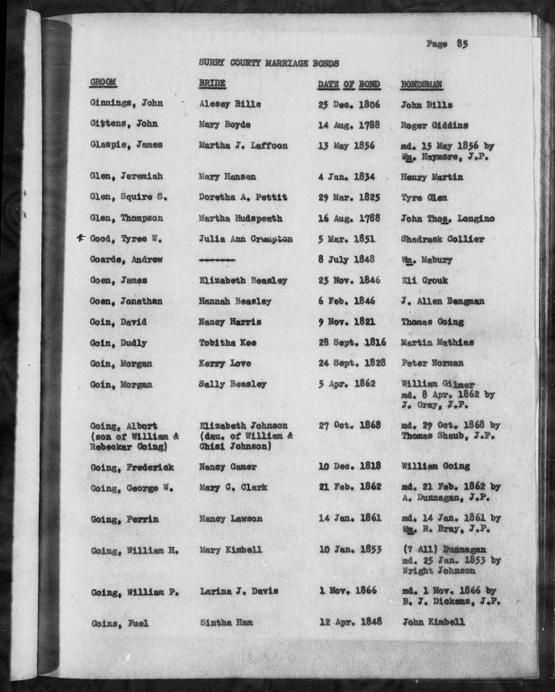 If Sintha Ham is his daughter, then he likely lived (at some point) in Surry County, North Carolina. Marriage bonds were normally taken out by the groom in the county that the bride usually resided in. The marriage bond for Fuel Goins and Sintha Ham was signed in 1848 in Surry County. She would have been 17-18 at the time, most likely still living at home.